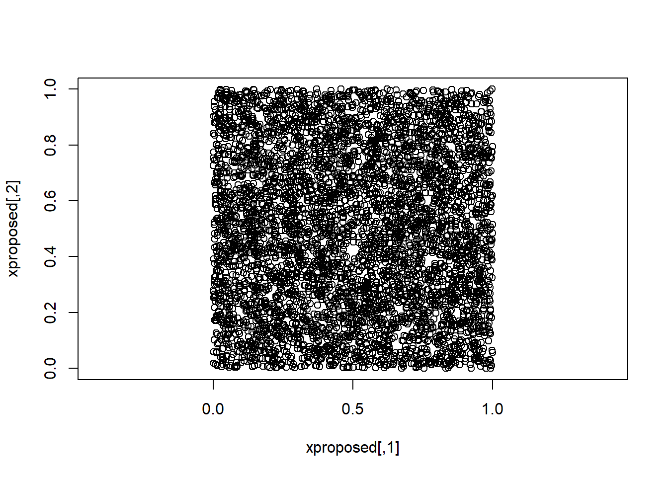 xproposed <- cbind( runif(n,0,1), runif(n,0,1) )