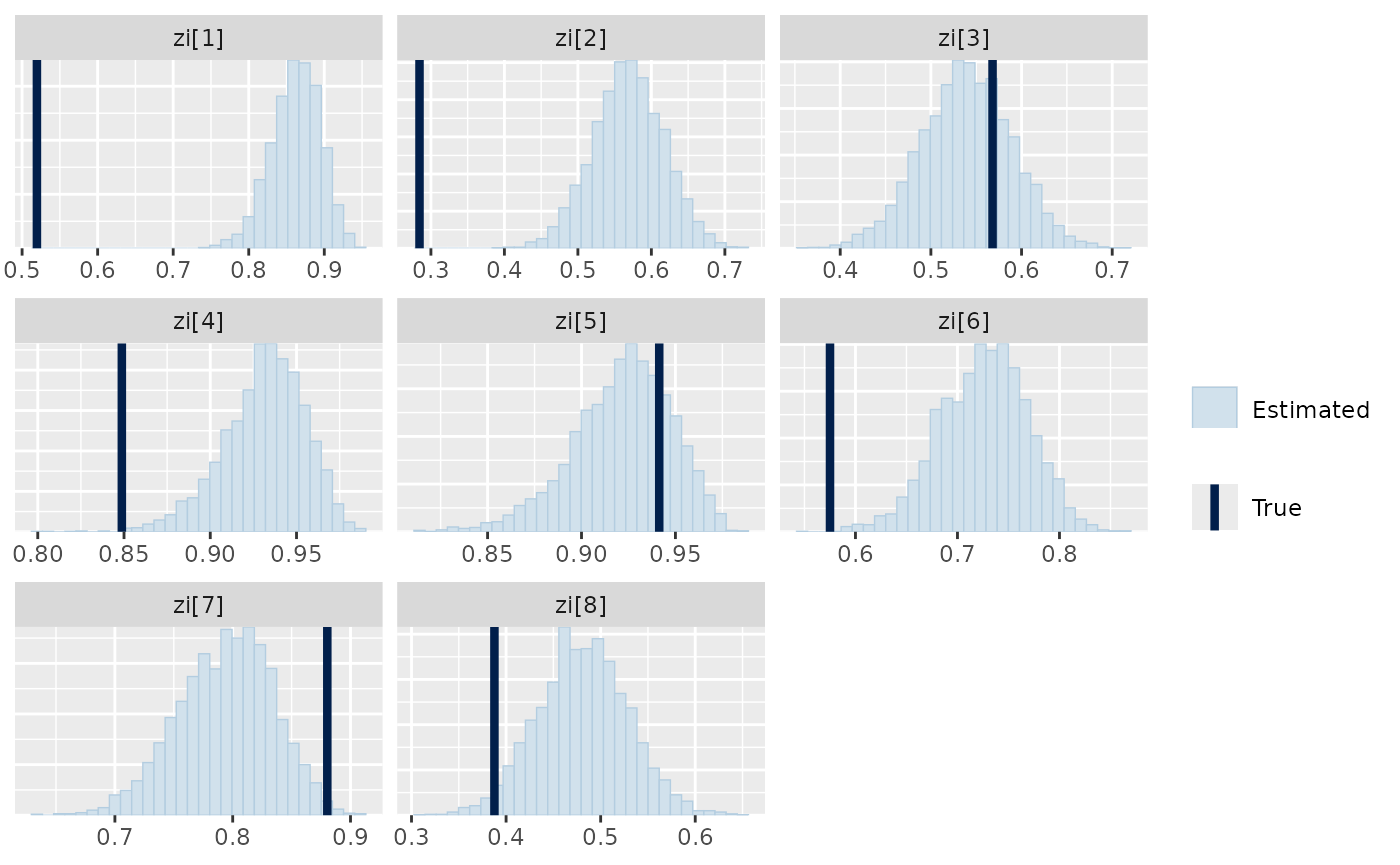 mcmc_plot(nb_mod, plotfun = "recover_hist", pars = "zi", regexp = TRUE,