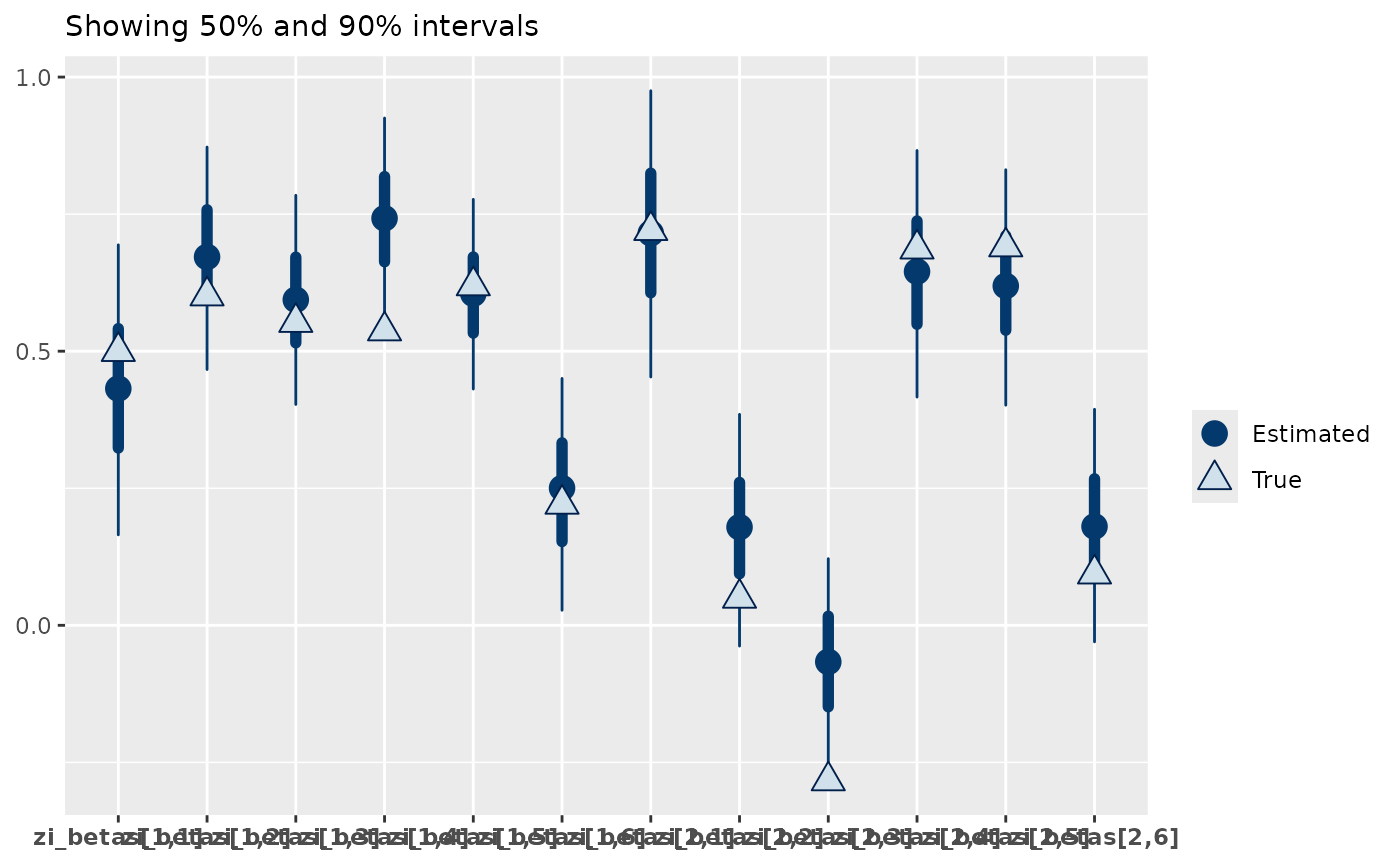 We now check the recovery of the model parameters, specifically the zi_betas: