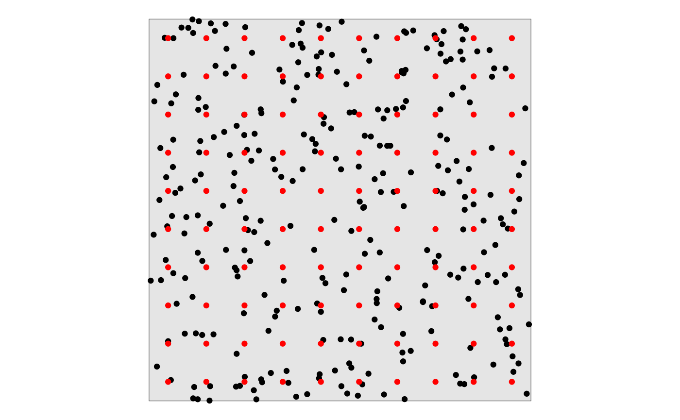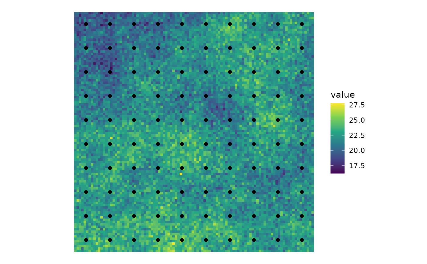 #> terra 1.9.1We’ll use the sampling locations created above, for simplicity. But we’ll now add a raster layer over the area of interest:
